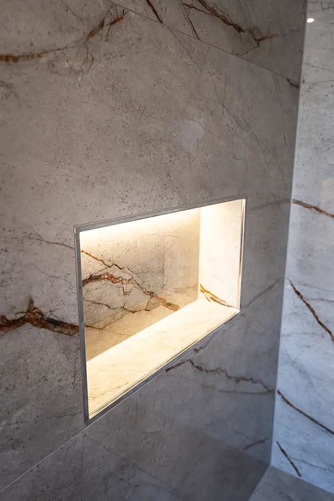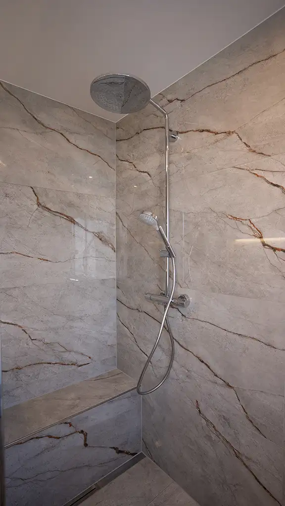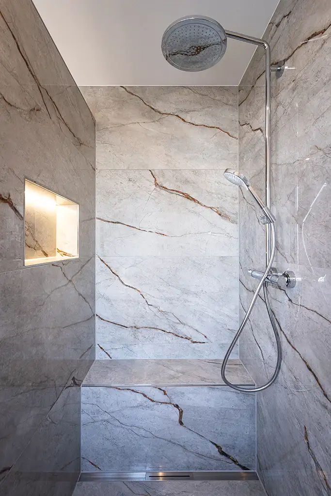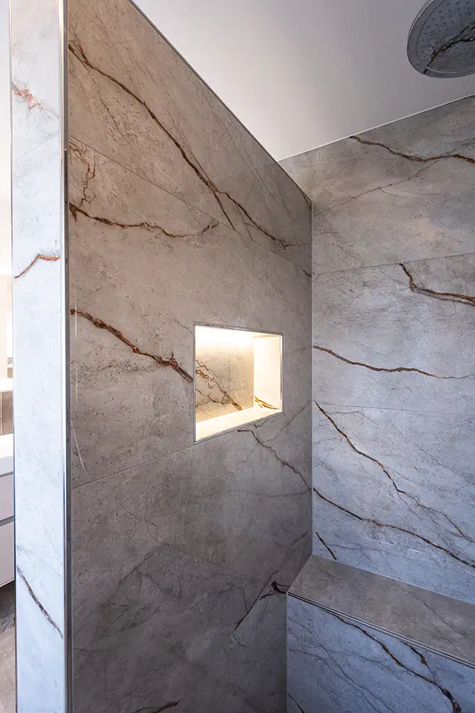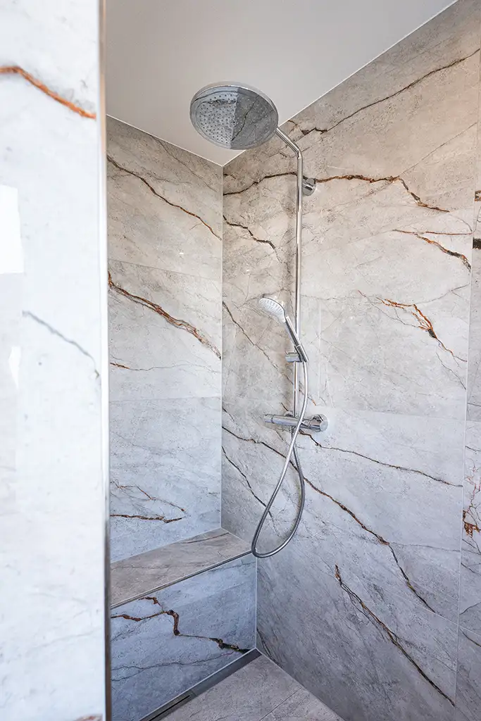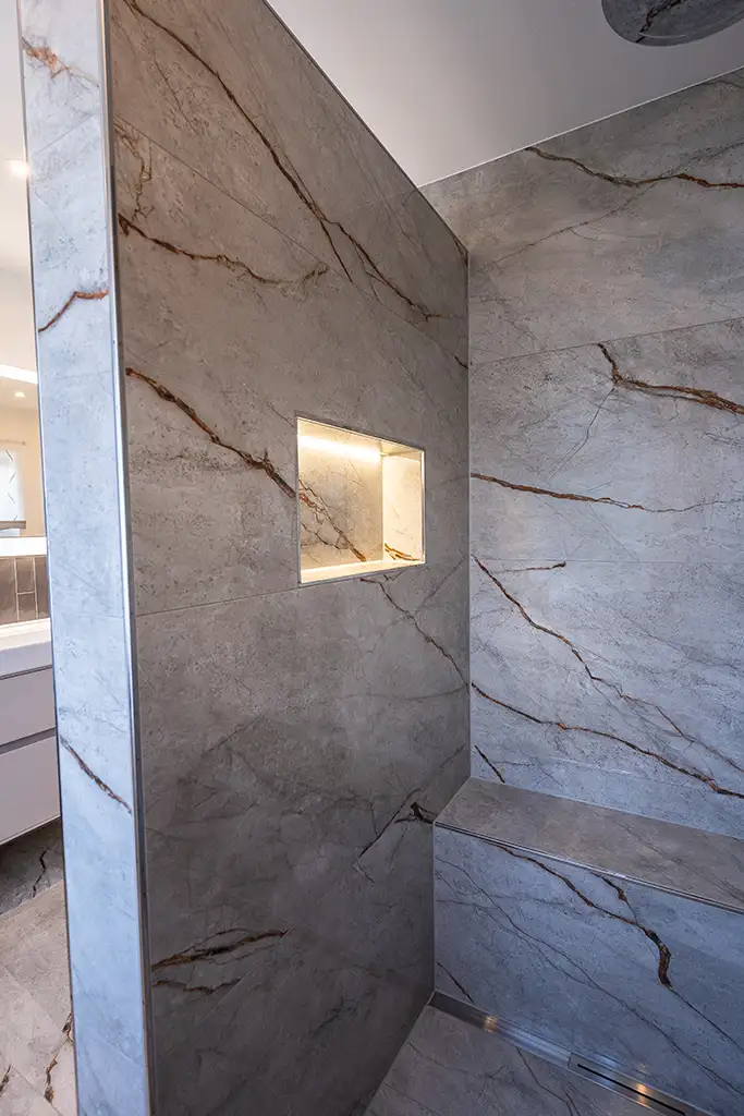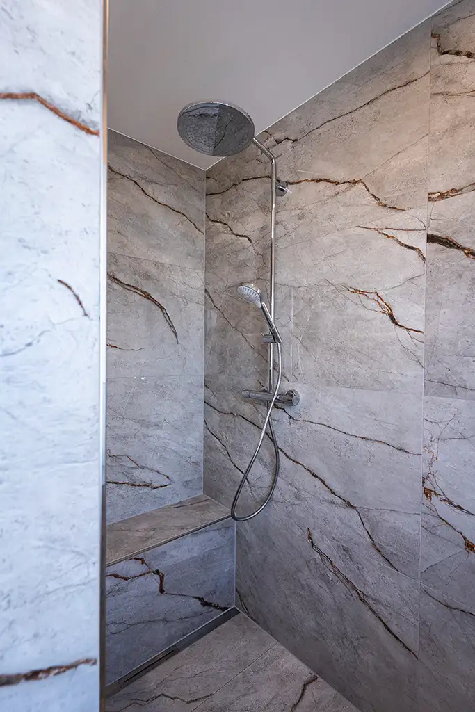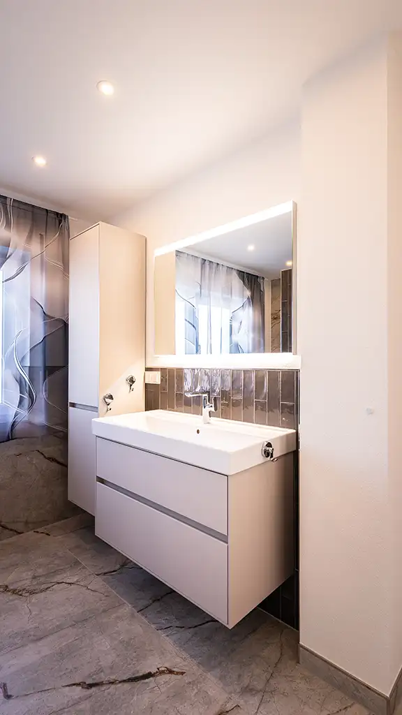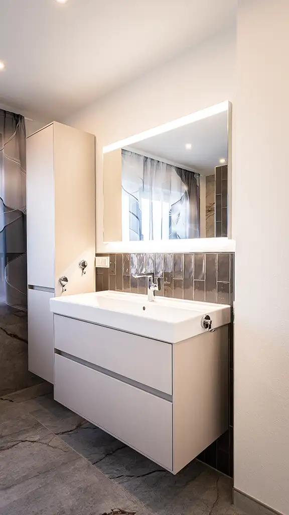Ein modernes Bad in grau-weiss